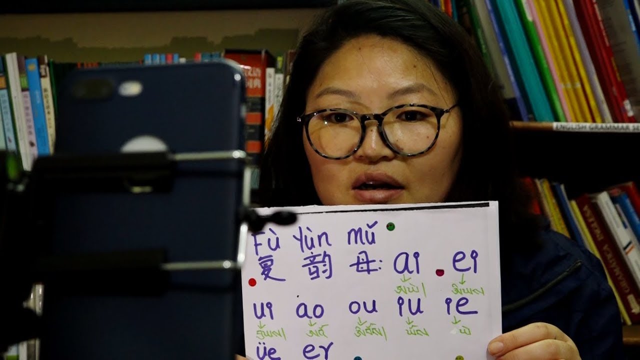 བཞུགས་སྒར་དྷ་རམ་ས་ལའི་བོད་འཛམ་གླིང་ནང་རྒྱ་ཡིག་སློབ་འཁྲིད་གནང་མཁན་བསོད་ནམས་མཁའ་འགྲོ་ལགས།