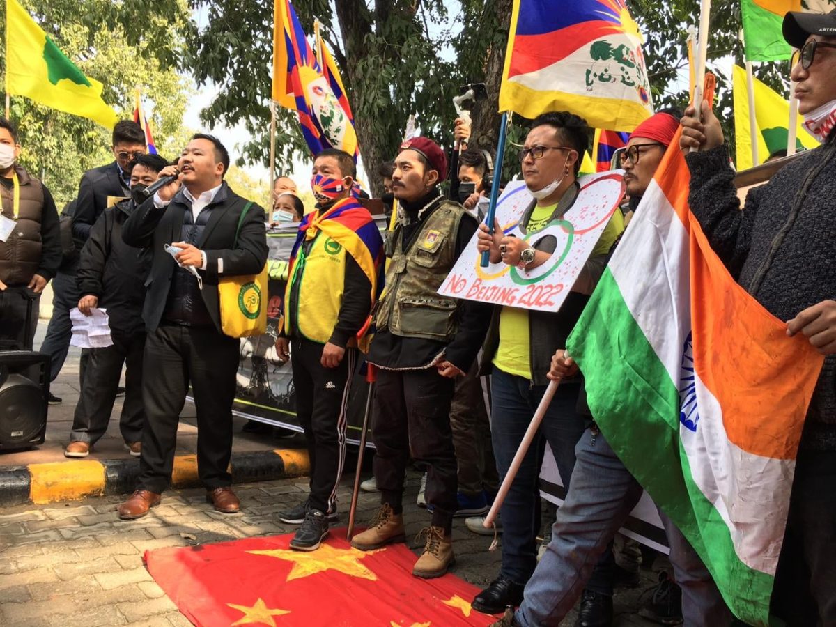Indian Police arrested Tenzin Tsundue with three other Tibetan activists at the protest rally against Beijing Winter Olympics 2022 at Nation's Capital Delhi. Image: Tibet Times