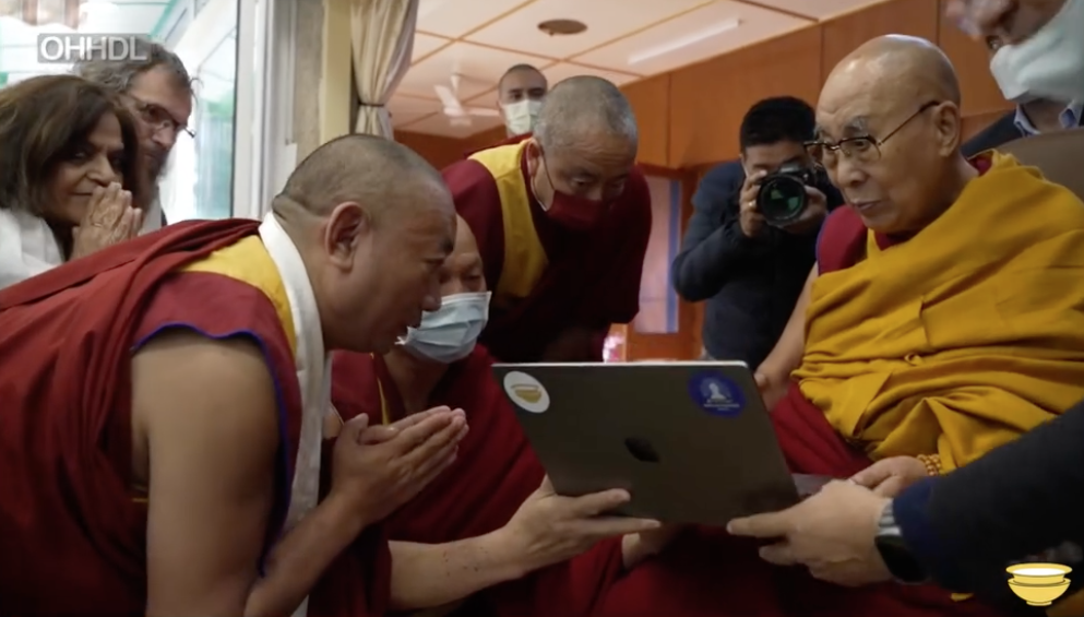 ༧གོང་ས་མཆོག་ལ་སྨོན་ལམ་རིག་ནུས་མངོན་གྱུར་ངོ་སྤྲོད་གནང་བཞིན་པ། པར་སྨོན་ལམ་རིག་ནུས་ཀྱི་ངོ་དེབ་ལས་བླངས།