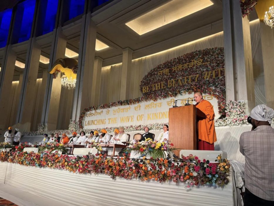 ༧སྐྱབས་རྗེ་གླིང་མཆོག་སྤྲུལ་རིན་པོ་ཆེ་མཆོག་གིས་པན་ཇབ་ཏུ་བསྡུས་པའི་འཛམ་གླིང་ཆོས་ལུགས་མཐུན་སྒྲིལ་གྱི་ལྷན་ཚོགས་ཐོག་གསུང་བཤད་གནང་བཞིན་པ། དྲ་ལམ་གྱི་པར།