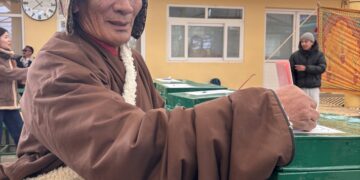 བཙན་བྱོལ་བོད་མིའི་སྲིད་སྤྱི་གཉིས་ཀྱི་སྔོན་འགྲོའི་འོས་བླུག་བཞིན་པ།
