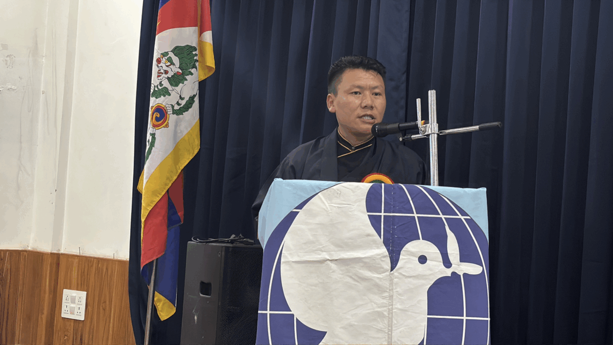 མཛད་སྒོའི་སྟེང་ཐོག་མར་རྒྱལ་སྤྱིའི་དབུ་མའི་ལམ་མི་མང་ལས་འགུལ་ཁང་གི་ཚོགས་གཞོན་བསྟན་འཛིན་བཤེས་གཉེན་ལགས་ཀྱིས། དབུ་མའི་ལམ་གྱི་ཉིན་མོ་འདི་བོད་མི་མང་སྤྱི་འཐུས་ལྷན་ཚོགས་ཀྱིས་ཕྱི་ལོ་ ༡༩༩༧ ཟླ་ ༩ ཚེས་ ༡༨ ཉིན་གཞུང་འབྲེལ་སྲིད་བྱུས་སུ་གཏན་འབེབས་གནང་བའི་ཉིན་མོ་ཞིག་ཡིན་པར་སོང་། ལོ་ལྟར་དེ་རིང་གི་ཉིན་མོ་འདི་གལ་ཆེན་དོན་ཆེན་དུ་བརྩིས་ནས་སྲུང་གཙི་ཞུས་དང་ཞུ་མུས་ཡིན། དབུ་མའི་ལམ་གྱི་སྲིད་ཇུས་གལ་ཆེན་པོ་རེད། འོན་ཀྱང་། དེ་དང་མཉམ་དུ་རྩ་ཆེ་བའི་བོད་ཀྱི་ཆོས་དང་རིག་གཞུང་ཉར་ཚགས་བྱ་དགོས་པ་དང་། ད་ལྟའི་བོད་ནང་གི་ཛ་དྲག་གནས་སྟངས་དེ་དག་གང་མགྱོགས་སེལ་བའི་ཐབས་ལམ་གལ་ཆེན་པོ་ཆགས་ཀྱི་ཡོད་པར་བརྟེན། ཚོགས་པའི་ངོས་ནས་ལོ་ལྟར་དེའི་ཐོག་འབད་བརྩོན་ཞུ་བཞིན་ཡོད་ལ། ང་ཚོས་ཕྱོགས་མཐའ་ཁག་ཏུ་ཡོད་པའི་བོད་མི་དང་རྒྱ་མི། དེ་བཞིན་ཕྱིའི་རྒྱལ་ཁབ་ཀྱི་མི་རིགས་འདྲ་མིན་ལ་ད་ལྟའི་བོད་ཀྱི་གནས་སྟངས་དང་། ད་ལྟའང་རྒྱ་ནག་གིས་བོད་ནང་གི་བོད་མི་རྣམས་ལ་འགྲོ་བ་མིའི་ཐོབ་ཐང་མེད་པའི་ཐོག བོད་ཀྱི་སྐད་ཡིག་དང་རིག་གཞུང་། ངོ་བོ་སོགས་རྩ་མེད་གཏོང་ཐབས་བྱས་དང་བྱེད་མུས་ཡིན་པ་སོགས་བོད་ནང་གི་ཛ་དྲག་གནས་སྟངས་སྐོར་ལ་འགྲེལ་བརྗོད་བྱས་ནས་བོད་དོན་གོ་རྟོགས་ངེས་པར་དུ་སྤེལ་དགོས་གལ་ཆེ། ལོ་རྒྱུས་ཀྱི་ཐོག་ནས་བོད་རང་བཙན་གཙང་མ་ཡིན་པའི་ངོས་འཛིན་ཞུས་པའི་ཐོག་ནས་ད་ལྟའི་གནས་སྟངས་ལ་དཔག་པའི་ང་ཚོའི་དབུ་མའི་ལམ་དེ་འོས་ཤིང་འཚམ་པའི་སྲིད་ཇུས་རེད། ད་ལྟ་བར་དུ་འགྲེལ་བརྗོད་ཞུས་པ་དེའང་བོད་མིའི་སྒྲིག་འཛུགས་ཀྱི་ཡིག་ཆ་གང་ཡོད་པ་གཞིར་བཟུང་གིས་འགྲེལ་བརྗོད་བྱེད་ཀྱི་ཡོད་ལ། དབུ་མའི་ལམ་གྱི་ཉིན་མོ་འདི་གལ་ཆེན་པོ་ཡིན་པའི་ངོས་འཛིན་ཞུས་པའི་ཐོག་ནས་མི་རེ་ངོ་རེའི་ཐོག་ནས་བོད་ཀྱི་གནས་སྟངས་དེ་རྒྱལ་སྤྱིའི་སྤྱི་ཚོགས་སྟེང་འགྲེམས་སྤེལ་བྱ་རྒྱུ་དང་། བོད་ཀྱི་སྐད་ཡིག་དང་རིག་གཞུང་སོགས་སྲུང་སྐྱོབ་བྱེད་པ་བརྒྱུད་༸གོང་ས་རྒྱལ་བ་རིན་པོ་ཆེ་མཆོག་ལ་བཀའ་དྲིན་རྗེས་དྲན་ཞིག་ཆགས་ཀྱི་ཡོད་རེད་བསམ་གྱི་འདུག སླར་ཡང་ཚང་མ་ལ་དབུ་མའི་ལམ་གྱི་ཉིན་མོ་བཟང་ཞུ་རྒྱུ་ཡིན། ཞེས་སོགས་འགྲེལ་བརྗོད་གནང་སོང་།