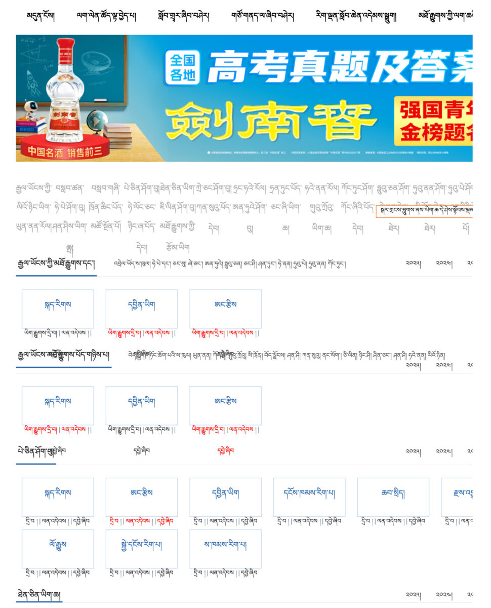 ཕྱི་ལོ་ ༢༠༡༦ ལོ་ནས་ད་ལོ་ ༢༠༢༥ ལོ་བར་གྱི་རྒྱལ་ཡོངས་མཐོ་རྒྱུགས་ཀྱི་ཞིང་ཆེན་དང་ས་གནས། དྲི་བ་དང་དྲིས་ལན་འདེབས་རྒྱུའི་སློབ་ཚན་ནམ་སྦྱོང་ཚན་དག་དྲ་ལམ་ནས་ལྟ་ཐུབ་པ་དང་། དེའི་ནང་དུའང་བོད་ཡིག་གི་རྒྱུགས་ཤོག་ཡོད་པའི་ཁྲོད་བོད་ཡིག་ཆེད་སྦྱོང་གི་རིག་ཚན་གཉིས་(བོད་ཀྱི་རྩོམ་རིག་དང་གསོ་རིག་) གཉིས་ཀྱི་སྐོར་གང་ཡང་བཀོད་པ་མ་རྙེད། འོན་ཀྱང་བོད་ཡིག་གདམས་ངའི་ཁོངས་ཡོད་པ་བཀོད་འདུག[13] དཔེ་མཚོན་ཟུར་དུ་ཡོད།
