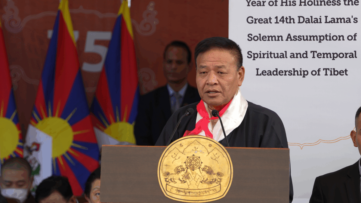 བཀའ་དྲིན་རྗེས་དྲན་གཟེངས་རྟགས་ཚོགས་ཆུང་གི་ཚོགས་གཙོ་བཀྲ་ཤིས་རྣམ་རྒྱལ་ལགས་ཀྱིས། དེ་རིང་ཉིན་མོ་འདི་ནི་ཕྱི་ལོ་ ༡༩༥༠ ཟླ་ ༡༡ ཚེས་ ༡༧ ཉིན་༧གོང་ས་རྒྱལ་བ་རིན་པོ་ཆེ་མཆོག་ནས་ཆོས་སྲིད་ལུགས་གཉིས་ཀྱི་ཐུགས་འགན་བཞེས་ཏེ་མི་ལོ་ཧྲིལ་བོ་ ༧༥ འཁོར་བའི་དུས་ཚོད་ཁྱད་པར་ཅན་ཞིག་ཡིན་པ་དང་། དེ་ཡང་བོད་ཤར་ཕྱོགས་ནས་རྒྱ་ནག་གིས་དཔུང་འཇུག་བྱས་པ་དང་། བོད་ཀྱི་ཆབ་སྲིད་འཛིན་སྐྱོང་དང་བཅས་པ་ཨ་ཆད་འུ་ཐུག་གི་གནས་སྟངས་སུ་གྱུར་ནས། བོད་ཀྱི་ལྷ་སྡེ་མི་སྡེ་ཡོངས་ཀྱིས་གསོལ་བ་རྩེ་གཅིག་བཏབ་པར་བརྟེན། དགུང་གྲངས་ ༡༦ ལས་ཕེབས་མེད་ཀྱང་བོད་ཀྱི་ཆོས་སྲིད་ལུགས་གཉིས་ཀྱི་ཐུགས་འགན་བདག་གི་བཞེས་པའི་ཉིན་མོ་སྟེ། བོད་ཀྱི་བྱུང་རབས་ནང་གལ་ཆེའི་དུས་ཚོད་ཅིག་ཆགས་ཡོད། དེར་བརྟེན་དེ་རིང་གི་ཉིན་མོ་འདིར་བོད་མི་ཡོངས་ནས་༸རྒྱལ་བའི་བཀའ་དྲིན་ཞུ་དགོས་པའི་དམིགས་བསལ་གྱི་ཉིན་མོ་གལ་ཆེན་ཞིག་ཡིན། ༸སྤྱི་ནོར་༸གོང་ས་སྐྱབས་མགོན་ཆེན་པོ་མཆོག་གི་ལུགས་གཉིས་ཀྱི་ཐུགས་འགན་བཞེས་རྗེས། བོད་རྒྱ་གཉིས་ཞི་མཐུན་འགྲིག་འཇགས་ཡོང་ཐབས་སུ་གུ་ཡངས་དཔྱོད་ཤེས་ཀྱི་དགོངས་བཞེས་གནང་ཡོད་ཀྱང་། རྒྱ་ནག་དམར་པོའི་གཞུང་གིས་དེ་ལས་ལྡོག་སྟེ་བོད་ནང་ཛ་དྲག་དྲག་རྩུབ་ཀྱི་བྱེད་སྒོ་ཤུགས་ཆེར་བཏང་བར་བརྟེན། ཕྱི་ལོ་ ༡༩༥༩ ཟླ་ ༣ ཚེས་ ༡༠ ཉིན་བོད་མིའི་རང་དབང་སྒེར་ལངས་ཆེན་མོ་བྱས་པ་དང་། བོད་ཀྱི་རྒྱལ་ས་ལྷ་སར་རྒྱ་དམར་གྱི་བྱེད་སྟངས་ཉིན་རེ་བཞིན་ཛ་དྲག་ཆེ་རུ་བཏང་བར་བརྟེན། ལྷ་ལྡན་དུ་མུ་མཐུད་བཞུགས་རྒྱུར་ཐུགས་འགན་སོས་ཐབས་བྲལ་ཏེ། རྒྱ་གར་ཕྱོགས་སུ་ཉེན་གཡོལ་དུ་ཆིབས་བསྒྱུར་བསྐྱངས་བ་རེད། ཅེས་གསུངས་སོང་།
