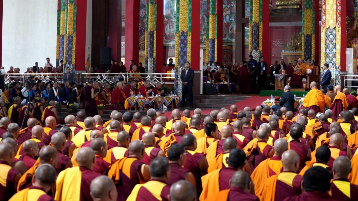 སྐབས་དེར་༧གོང་ས་རྒྱལ་བ་རིན་པོ་ཆེ་མཆོག་ནས། བོད་མིའི་གཞིས་ཆགས་ཀྱི་མི་མང་དང་དགེ་འདུན་འདུས་པའི་ཚོགས་དེ་རིང་འཛོམས་པ་དེས་ག་རེ་རྟགས་བསྟན་གྱི་ཡོད་རེད་ལབ་ན། དངོས་གནས་དྲང་གནས་ཀྱི་མདོ་སྔགས་ཟུང་འབྲེལ་གྱི་སངས་རྒྱས་པའི་ཆོས་རྒྱ་ཆེ་གཏིང་ཟབ། ཀླུ་སྒྲུབ་ཡབ་སྲས་ལ་སོགས་པའི་རྒྱ་གར་གྱི་པཎ་གྲུབ་དེ་དག་ལས་ཇི་བྱུང་དྲི་མ་མེད་པ་ཞིག་ང་ཚོ་བོད་པས་བདག་པོ་རྒྱག་ནས་བསྡད་པ་རེད་གདའ། བར་སྐབས་བོད་ནང་དཀའ་ངལ་ཞེ་དྲགས་འཕྲད་པ་རེད། ས་གནས་མང་པོ་ཞིག་ལའང་དཀའ་ངལ་དེ་ཕྲད་པ་རེད་དེ། ང་ཚོ་བོད་པ་ཚོས་དངོས་གནས་དྲང་གནས་སོ་སོའི་ཆོས་དང་རིག་གཞུང་ལ་གཏིང་ནས་དགའ་མོས་བྱེད་པའི་ལྷག་བསམ་རྩེ་གཅིག་པའི་ཐོག་ནས། སྐབས་དང་དུས་འཚམ་པའི་འདོན་པ་འདོན་རྒྱུས་མཚོན་པའི་གལ་ཆེ་བ་དེ་སོ་སོའི་བསམ་བློའི་ནང་ལ་བོད་གངས་ཅན་གྱི་ལྗོངས་ལ་ཡོད་པའི་སངས་རྒྱས་ཀྱི་ཆོས་རྒྱ་ཆེ་གཏིང་ཟབ་པ་ཞིག་ཡོད་པ་འདི། ང་ཚོ་བོད་པས་དངོས་གནས་དྲང་གནས་ཧ་ལས་པ་ཞིག་བདག་པོ་རྒྱག་འདུག སོ་སོས་བདག་པོ་རྒྱག་པ་ཙམ་དུ་མ་ཟད། དེང་སང་རྒྱ་ནག་ནང་དུའང་བོད་ཀྱི་སངས་རྒྱས་པའི་ཆོས་ལ་གུས་བརྩི་ཞུས་པའི་གནས་ཚུལ་ཞིག་སླེབས་ཀྱི་ཡོད་རེད་ལ། འཛམ་བུ་གླིང་གི་རྒྱལ་ཁབ་གང་སར་བོད་ཀྱི་ཆོས་དང་རིག་གཞུང་ལ་ཆོས་དད་མེད་པ་ཚོས་ཀྱང་དོ་སྣང་ཇེ་ཆེར་དང་། དགའ་མོས་བྱེད་མཁན་ཇེ་མང་ཇེ་མང་དུ་འགྲོ་བསྡད་ཀྱི་འདུག་གཱ། ང་ཚོས་སངས་རྒྱས་ཀྱི་བསྟན་པ་རྒྱས་པར་ཤོག་ཅེས་སྨོན་ལམ་བརྒྱབ་པ་གཅིག་པུ་མ་ཡིན་པར་ཁ་ཡོད་ལག་ཡོད་ཀྱི་ཐོག་ནས་ང་ཚོ་བོད་པ་ཚོ་དངོས་གནས་དྲང་གནས་ཀྱི་ལུང་རྟོགས་ཀྱི་རྒྱལ་བའི་བསྟན་པ་འདི་མི་ཉམས་གོང་འཕེལ་དང་ཉམས་པ་སོར་བཅུད་ཡག་པོ་ཞིག་ཡོང་ཐུབ་རྒྱུར་ཚང་མས་སེམས་ཤུགས་བསྐྱེད་ནས། དེ་ལུགས་ཀྱི་སྨོན་ལམ་རྒྱག་རྒྱུ་སོགས་བྱེད་ཀྱི་ཡོད་རེད། སངས་རྒྱས་པའི་ཆོས་ལ་འཛམ་བུ་གླིང་འདིའི་སྒང་ལ་དགའ་མོས་བྱེད་མཁན་མང་པོ་ཞེ་དྲགས་རེད། དེ་རིང་ཁ་སང་སངས་རྒྱས་པའི་ཆོས་ལ་དོ་སྣང་བྱེད་མཁན་མི་རབས་གསར་པ་མང་པོ་ཞེ་དྲགས་སླེབས་ཡོང་གི་འདུག དེ་འདྲ་བྱས་ནས་སངས་རྒྱས་པའི་ཆོས་ལ་དད་མོས་བྱེད་མཁན་ཇེ་མང་ཇེ་མང་དུ་འགྲོ་སྡོད་པ་ཞིག་རེད། ཅེས་གསུངས་སོང་།