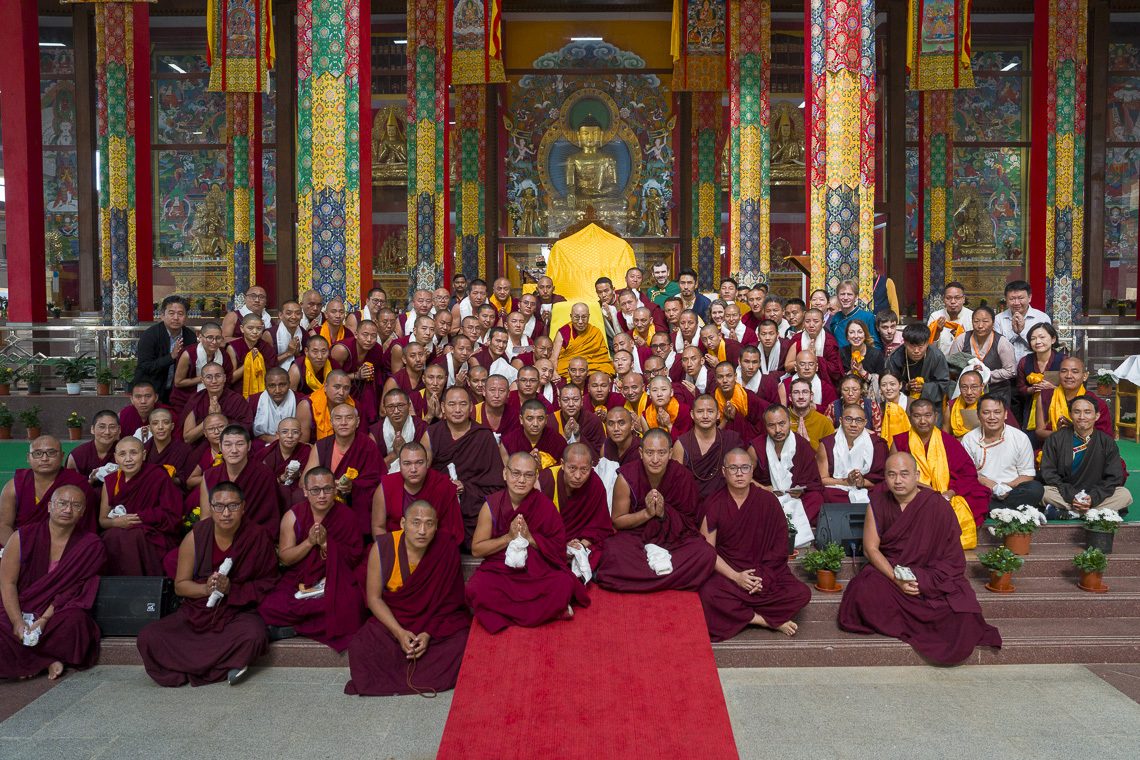 དེ་རིང་༸གོང་ས་རྒྱལ་བ་རིན་པོ་ཆེ་མཆོག་ནས་དཔལ་ལྡན་འབྲས་སྤུངས་སྒོ་མང་གྲྭ་ཚང་གི་ཆོས་རྭ་གསར་པའི་ནང་ཨེ་མོ་རི་དང་བོད་ཀྱི་ཚན་རིག་ཟབ་སྦྱོང་གི་ཚོགས་བཅར་བ་དགུ་བཅུ་ཙམ་དང་། ཨ་རི་ནས་ཆེད་དུ་ཟབ་འཁྲིད་གནང་བར་ཕེབས་མཁན་གྱི་དགེ་རྒན་ཚུད་པའི་མི་གྲངས་ ༣༠༠ ལྷག་ལ་མཇལ་ཁ་འསྩལ་སོང་།