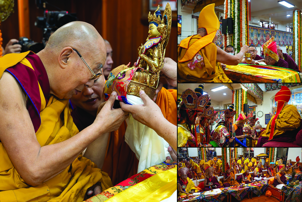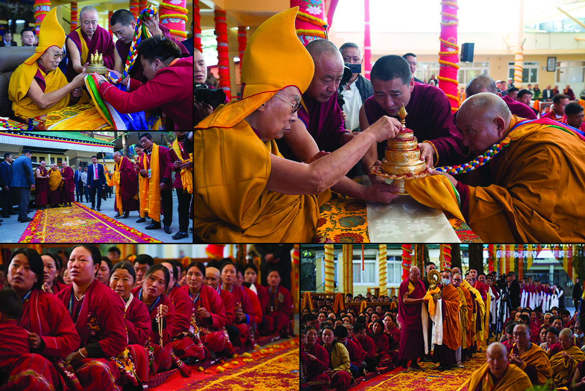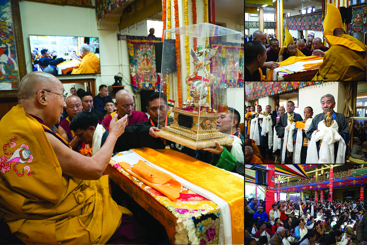 ཕྱི་ལོ་ ༢༠༢༥ ཟླ་ ༡༠ ཚེས་ ༨ ཉིན་བཞུགས་སྒར་ཐེག་ཆེན་ཆོས་གླིང་གཙུག་ལག་ཁང་དུ། ༸གོང་ས་རྒྱལ་བ་རིན་པོ་ཆེ་མཆོག་ལ་ཡུ་རོབ་བོད་རིགས་ཚོགས་པ་ཁག་དང་ཨོ་གླིང་རྒྱལ་ཡོངས་བོད་རིགས་མཐུན་ཚོགས། བོད་ཀྱི་གཞོན་ནུ་ལྷན་ཚོགས་བཅས་ཐུན་མོང་གིས་ཚེ་དཔག་མེད་དྭངས་མ་བཅུད་འདྲེན་གྱི་ཆོ་གའི་སྒོ་ནས་བརྟན་བཞུགས་བསྟར་འབུལ་ཞུས་ཡོད་ཅིང་། བརྟན་བཞུགས་ཐོག་ཇོ་ནང་རྒྱལ་ཚབ་རིན་པོ་ཆེ་དང་རྡོ་རྗེ་སློབ་དཔོན་ཟམ་གདོང་རིན་པོ་ཆེ། ཁྲོམ་ཐོག་རིན་པོ་ཆེ། རྒྱུད་སྟོད་མཁན་རིན་པོ་ཆེ་སོགས་ཀྱིས་གཙོས་དགེ་འདུན་པ་དང་བཙུན་མ་རྣམས་དང་། བོད་མིའི་སྒྲིག་འཛུགས་ཀྱི་མང་གཙོའི་ཀ་བ་གསུམ་གྱི་མཛད་གཙོ་རྣམ་པ་གཙོས་ཡུ་རོབ་དང་ཨོ་གླིང་། བོད་ཀྱི་གཞོན་ནུ་ལྷན་ཚོགས་བཅས་ཀྱི་ཚོགས་མི་རྣམས་དང་། དེ་བཞིན་ཕྱོགས་མཐའ་ཁག་ནས་ཕེབས་པའི་དད་ལྡན་པ་དང་བཞུགས་སྒར་ཁུལ་གྱི་དད་ལྡན་སེར་སྐྱ་མི་མང་བརྒྱ་ཕྲག་མང་པོ་འཛོམས་འདུག