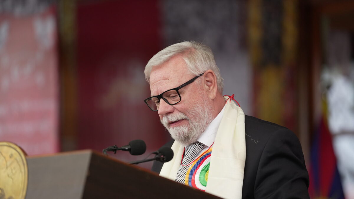 བོད་མི་མང་སྤྱི་འཐུས་ཚོགས་གཙོ་མཁན་པོ་བསོད་ནམས་བསྟན་འཕེལ་མཆོག་གིས་གསུང་བཤད་གནང་བཞིན་པ།་༢༠༢༦།༣།༡༠ དུས་བབ་གསར་ཁང་གི་པར།