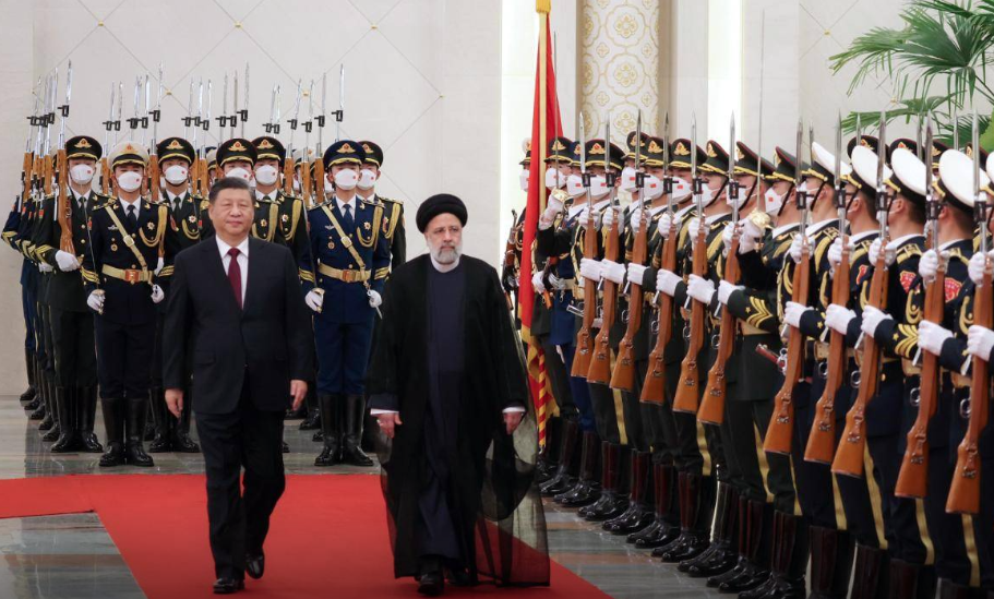 རྒྱ་ནག་དང་ཨི་རན་བར་འདས་པའི་མི་ལོ་ཉི་ཤུ་ལྷག་རིང་དམག་དོན་མཉམ་འབྲེལ་བྱས་ཏེ་འཕེལ་རྒྱས་ཆེན་པོ་བྱུང་ཡོད་ཅིང་། དེས་མཐུན་གྲོགས་རྒྱལ་ཁབ་ཁག་གི་ས་ཁམས་ཆབ་སྲིད་ཀྱི་ཁེ་ཕན་དང་། དཔལ་འབྱོར་གྱི་འབྲེལ་ལམ། ཨ་རི་དང་ཨ་རིའི་མཐུན་གྲོགས་རྒྱལ་ཁབ་ཁག་གི་དཀྱིལ་ཤར་ཁུལ་དུ་དམག་ཤུགས་སྐྱེད་པར་འགོག་རྒོལ་ཆེན་པོ་བྱེད་ཀྱིན་ཡོད་ལུགས་བསྒྲགས་ཡོད།  ཕྱི་ལོ་ ༢༠༢༡ ལོར་རྒྱ་ནག་དང་ཨི་རན་གྱི་ལོ་ཉི་ཤུ་རྩ་ལྔའི་རྒྱ་ཆེ་བའི་འཐབ་ཇུས་མཉམ་ལས་གྲོས་མཐུན་(China–Iran Comprehensive Strategic Partnership) ལ་མིང་རྟགས་བཀོད་དེ། དེས་ནུས་ཤུགས་དང་། རྨང་གཞིའི་འཛུགས་སྐྲུན། བདེ་འཇགས། དེ་བཞིན་འཕྲུལ་རིག་ཡར་རྒྱས་བཅས་ཡུན་རིང་མཉམ་ལས་བྱས་ཏེ། ཨི་རན་གྱི་སྐྱེལ་འདྲེན་རྨང་གཞིའི་འཛུགས་སྐྲུན། དེ་བཞིན་རྒྱལ་སྲུང་འཕྲུལ་རིག་བཅས་ཀྱི་འཐབ་ཇུས་མཉམ་ལས་ལ་འཕེལ་རྒྱས་ཆེན་པོ་ཕྱིན་ཡོད་ལུགས་བསྒྲགས་འདུག