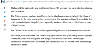 ཧི་མ་ཅཱལ་ནས་གསང་ཉུལ་གྱི་དོཊ་གཞིའི་འོག་མི་གཉིས་འཛིན་བཟུང་བྱས། བོད་ཀྱི་དུས་བབ། ༢༠༢༠/༠༨/༢༥ ཁ་སང་ཕྱི་ཚེས་ ༢༤ ཉིན་ཧི་མ་ཅཱལ་མངའ་སྡེ་གཞུང་གིས་རྒྱ་མི་གསང་ཉུལ་བ་ལའོ་སང་ཟེར་བ་དེ་དང་དངུལ་གཏོང་ལེན་གྱི་འབྲེལ་བ་ཡོད་པའི་དོགས་གཞི་ཅན་གྱི་མི་གཉིས་འཛིན་བཟུང་བྱས་ཡོད་པ་མ་ཟད་དེའི་ནང་གི་གཅིག་བོད་རིགས་་་ ཇེ་མང་ཀློགས།